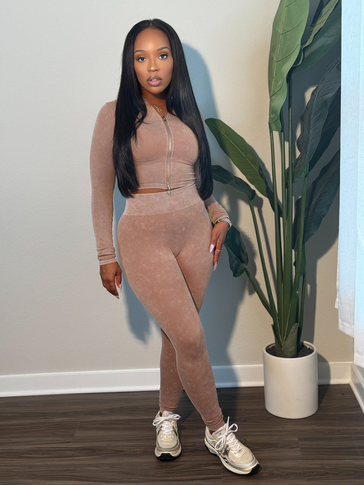 Washed Long sleeve 2 Zip Seamless Top And Leggings Enhance your athleisure style with our TOP AND LEGGINGS set. Crafted...