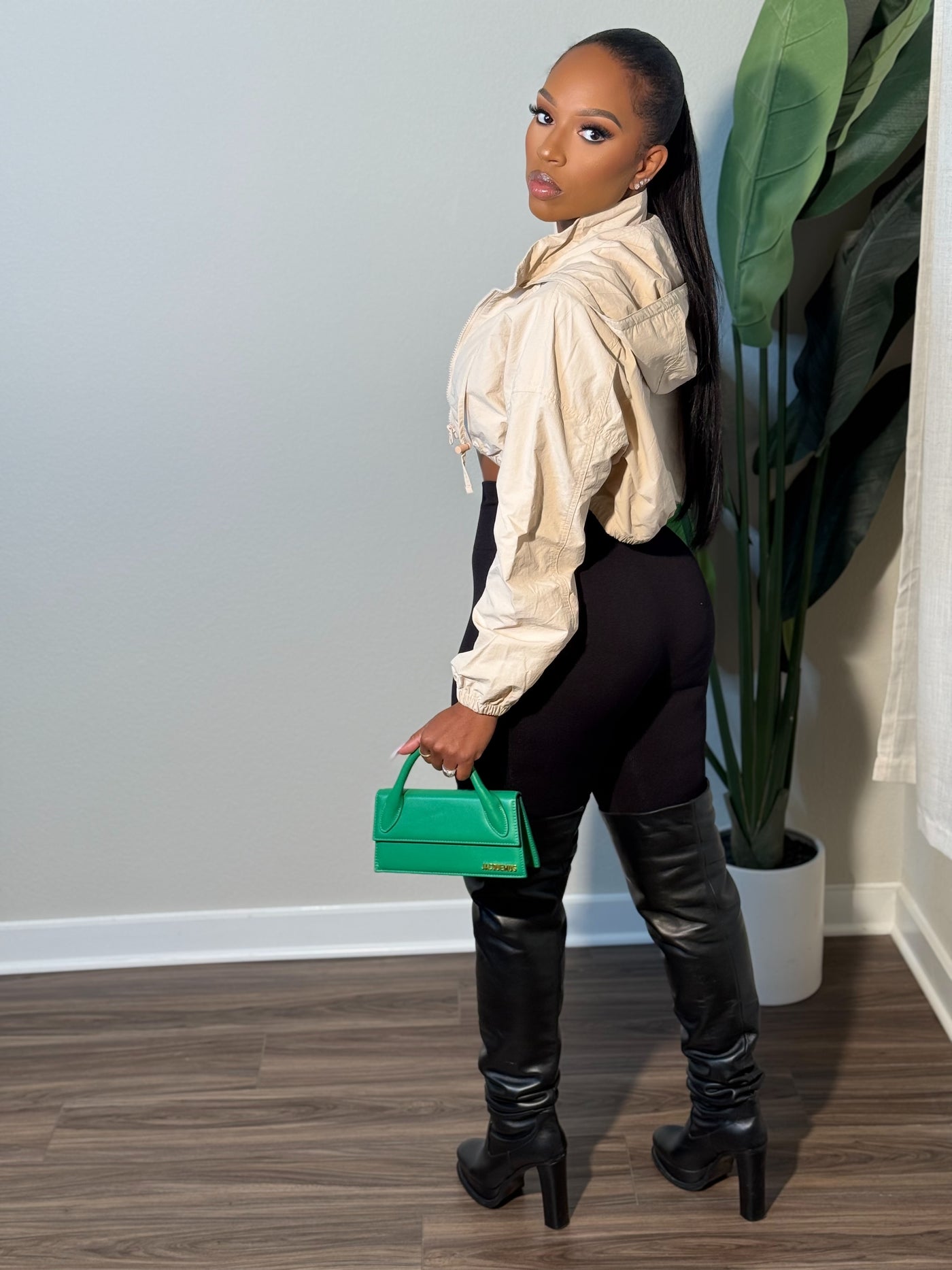 High-quality fabric, the jacket. The relaxed fit provides a comfortable feel, while the cropped design adds a modern twist to any outfit. Pair it with high-waisted jeans or a sleek skirt to create a look that's both fashionable and cozy.