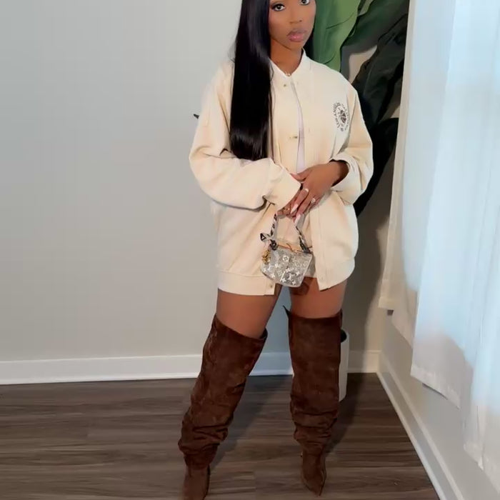 Embroidered oversize cardigan and shorts set - Round neckline - Long length - Button down cardigan - Drop shoulder - Loose fit - Oversize shorts - Elastic waistband - Front pockets on shorts, Good stretch
